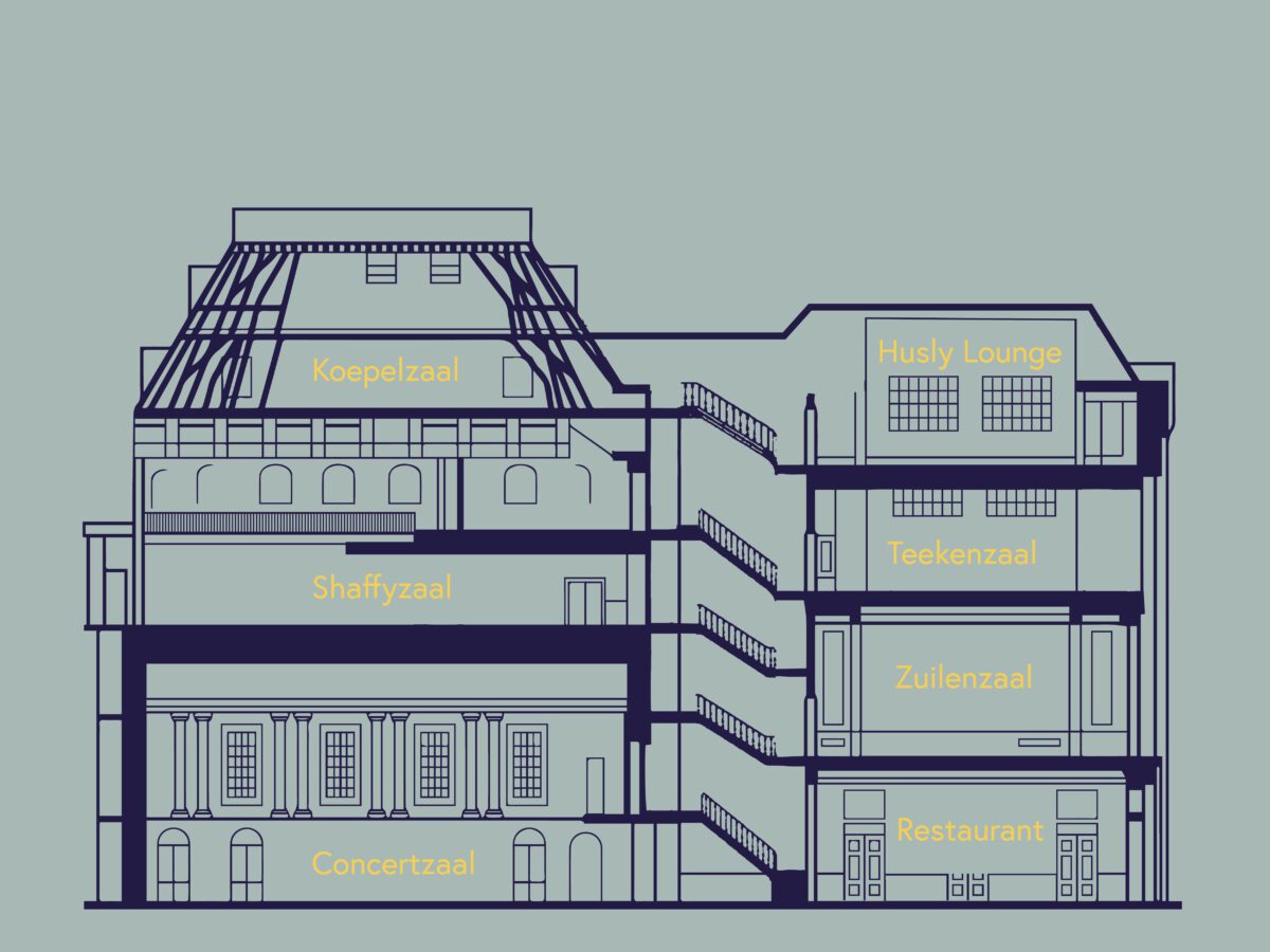 De huurprijs van de zalen is inclusief gebruik van de beschikbare audiovisuele middelen, 18m2 podium (Concertzaal, Zuilenzaal en Shaffyzaal) met een katheder, technische ondersteuning tijdens de bijeenkomst, het in-house meubilair (bij gebruik van Amerpodia catering), opbouw van de zalen en een gastvrij ontvangst bij de entrée van de locatie. Je kunt de verschillende zalen los van elkaar huren, een combinatie tussen de zalen maken of het gehele pand huren. Wist je dat het ook mogelijk is om bijvoorbeeld Rode Hoed, en/of De Nieuwe Liefde te combineren met één of meerdere zalen bij Felix Meritis?