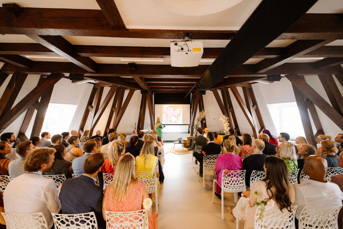 De Koepelzaal is uiterst geschikt voor zakelijke bijeenkomsten, congressen, break-outs en borrels. Omdat de zalen haast aan de Husly Lounge gevestigd zijn is het ook zeer makkelijk om het hiermee te combineren. Daarnaast is de ontvangstruimte binnen deze zaal ook een mooie toevoeging om jouw gasten te verwelkomen met een drankje of hapje. Uniek is de ovale vorm van de ruimte waardoor je een 360 graden uitzicht over Amsterdam hebt. De oude traditionele houten balken geven een sfeervol karakter en door de extra break-out ruimte binnen de zaal, zijn de mogelijkheden groot.